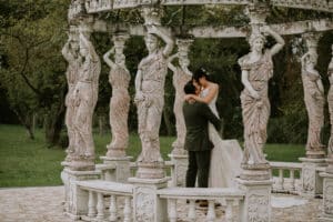 A unique highlight in the gardens, Aphrodite’s Dome features classical sculptures and positions couples to face the gardens. It creates elegant, cinematic portraits that stand out in any wedding album.